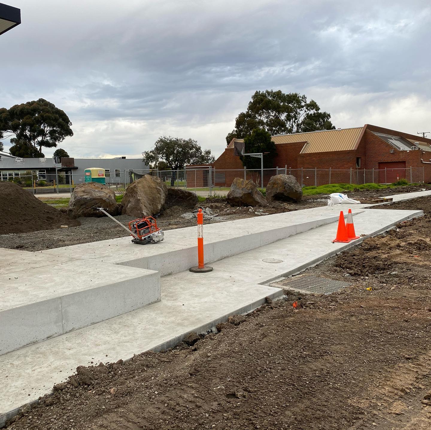 Approximately 450m2 of exterior paving for our scope of works which included the tiered wall with inset stairs for Bayside College's new sports pavilion at Newport. Another great project completed by the boys.